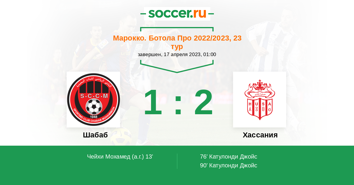 13' (1:0) Автогол Чейхи Мохамед (97)