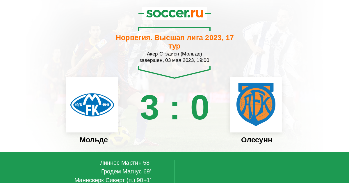 58' (1:0) Линнес Мартин (21) (Брунхильдсен Ола (11))