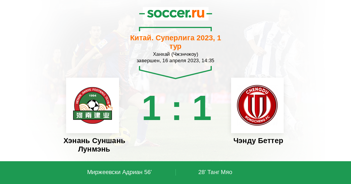 28' (0:1) Танг Мяо (20) (Ромуло (10))