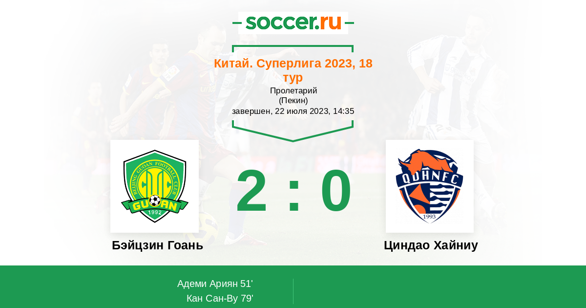 Запасные: 19 Найбиянг Мохемати (с 46'), 29 Абреу Фабио (с 55'), 15 Тиануй Гао (с 55'), 16 Фенг Боксуан (с 70'), 39 Ю Ян (с 87'), 14 Жоу Дехай, 36 Лианг Шаовен, 22 Ю Дабао, 44 Дуан Дежи, 34 Хоу Сен, 10 Чжанг Сиджэ
