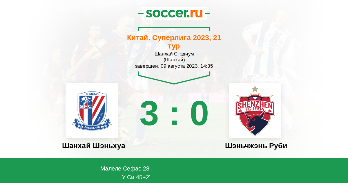 90+2' (3:0) Малеле Сефас (11) (Жианг Шенглонг (4))