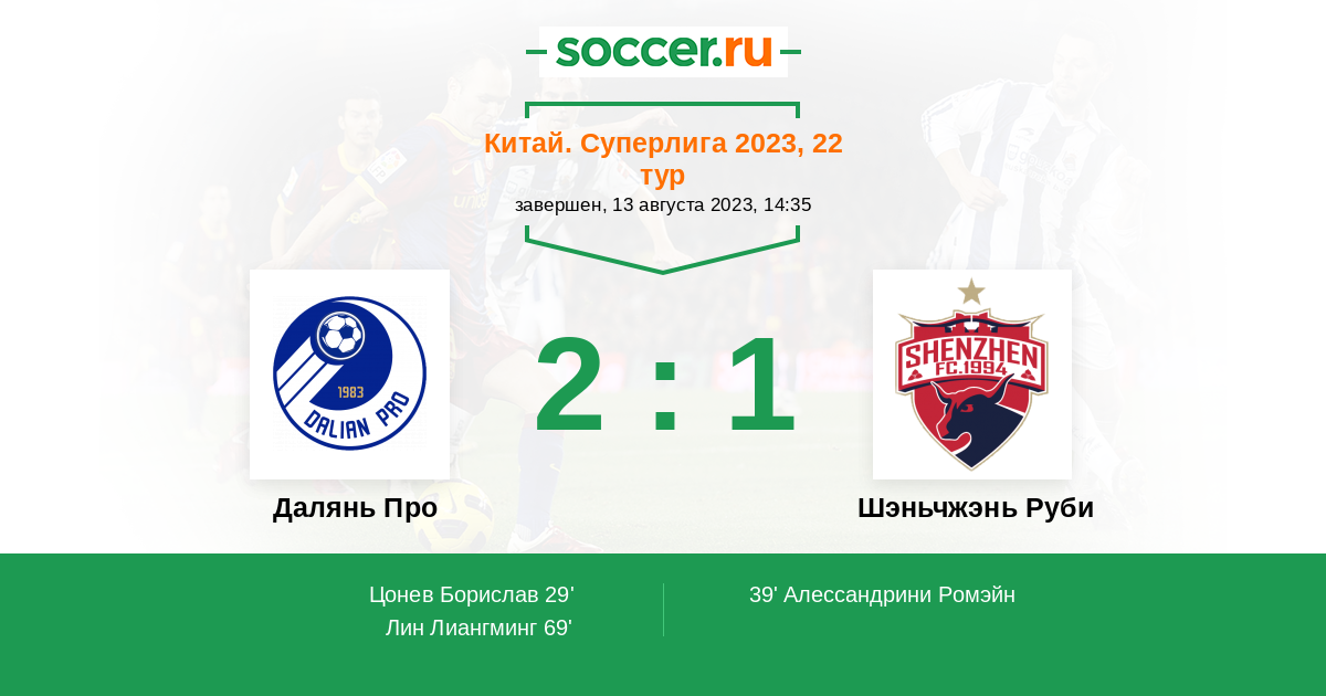 29' (1:0) Цонев Борислав (10) (Ванг Чженао (19))