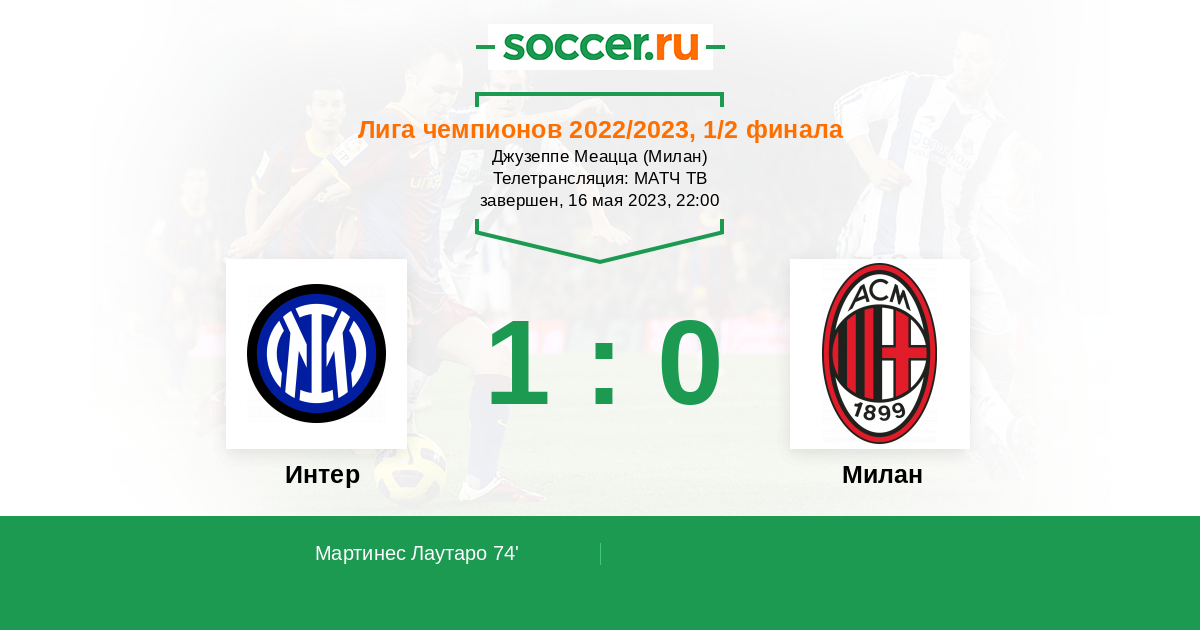 74' (1:0) Мартинес Лаутаро (10) (Лукаку Ромелу (90))