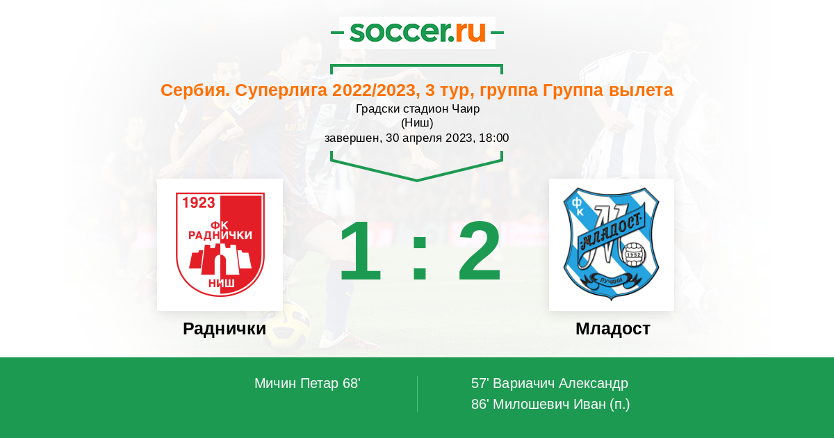 68' (1:1) Мичин Петар (7)