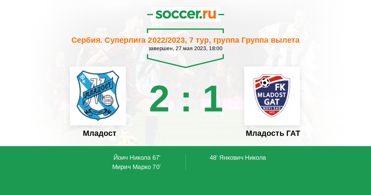 Запасные: 13 Дражич Стефан, 26 Милоевич Алекса, 5 Грабец Срджан, 17 Галл Ромен, 6 Маркович Саша (с 49'), 20 Митуликич Йован (с 76'), 8 Бьелос Мирослав (с 65'), 11 Арсик Лазар, 35 Милич Неманья (с 65'), 18 Падежанин Никола