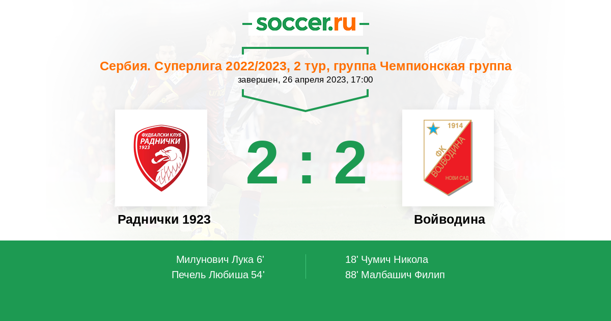18' (1:1) Чумич Никола (24)