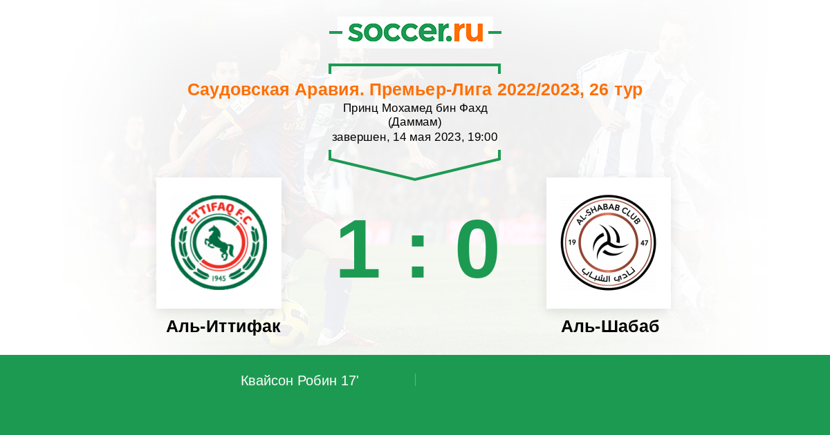 17' (1:0) Квайсон Робин (99) (Хаззази Али Абдулла (11))