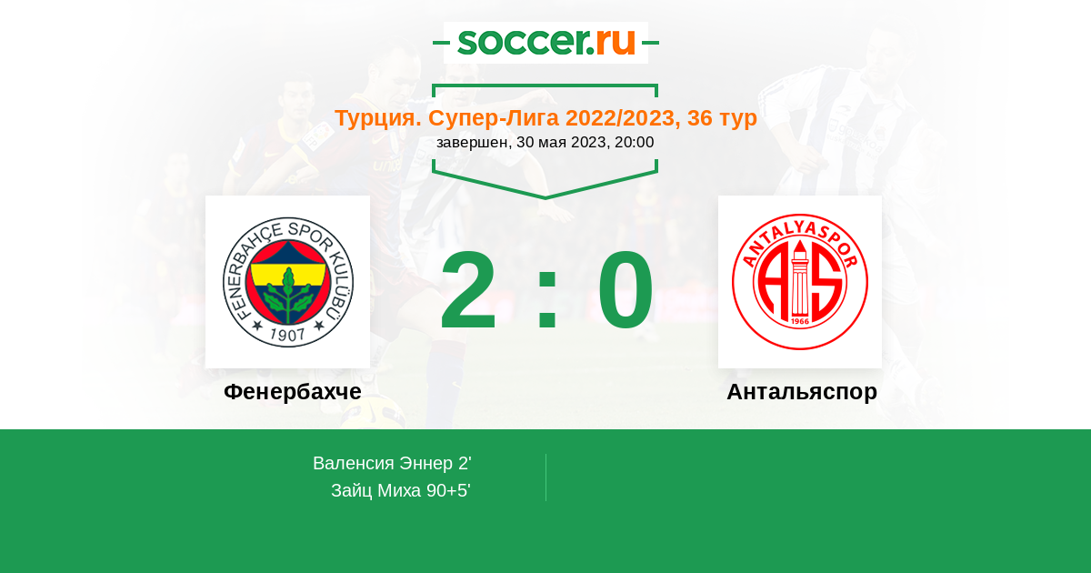 2' (1:0) Валенсия Эннер (13) (Гюлер Арда (10))