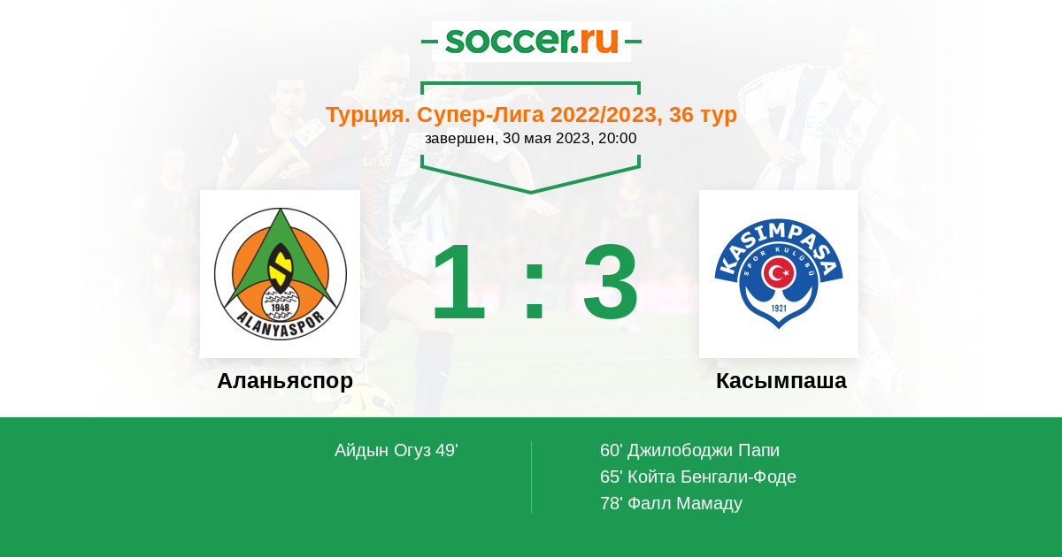 49' (1:0) Айдын Огуз (70) (Кандеяш Даниэл (21))