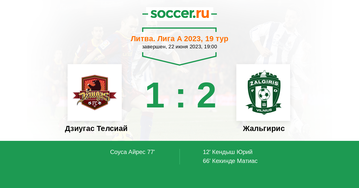 Запасные: 6 Канде Браима (с 33'), 9 Любас Хозас (с 70'), 27 Шлута Домантас (с 70'), 15 Неделькович Драган (с 78'), 22 Мантинис Каролис, 23 Янкаускас Юргис, 30 Йокубаускас Юстас, 88 Кривокапич Андрей, 2 Мантинис Криступас