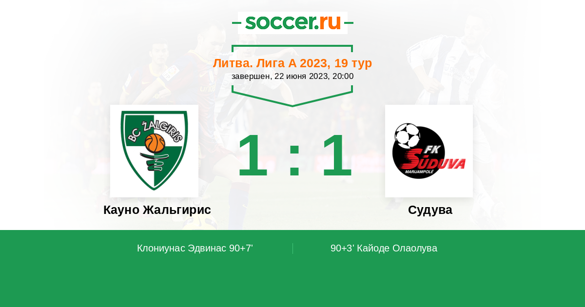 Запасные: 30 Восилиус Нидас (с 71'), 80 Клониунас Эдвинас (с 71'), 16 Опейеми Абдулгафар (с 89'), 22 Микелионис Дейвидас, 48 Стельмокас Томаш, 50 Буслис Габриелиус, 83 Найнис Пиюс