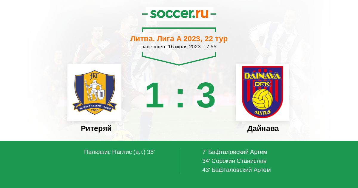 Запасные: 17 Римпа Деймантас (с 46'), 25 Окенде Пьер (с 83'), 2 Станкевичус Нохус, 6 Пино Ян, 15 Андрюшкевич Эмиль, 71 Петкевичус Пиус, 16 Раманаускас Матас, 99 Шматлак Мариан