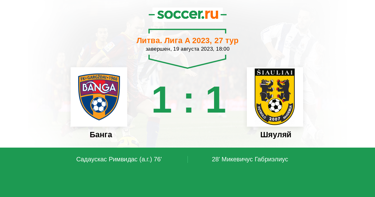76' (1:1) Автогол Садаускас Римвидас (18)