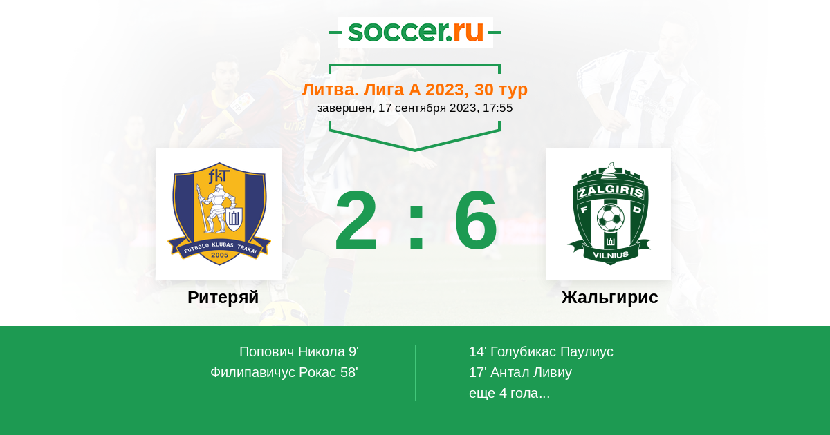 Запасные: 17 Римпа Деймантас (с 61'), 10 Ханджич Харис (с 69'), 22 Бузас Титас (с 69'), 13 Гумбаравичус Густас (с 69'), 23 Катинас Повилас (с 77'), 47 Росивери Анри, 71 Петкевичус Пиус, 75 Филипович Стефан, 16 Раманаускас Матас