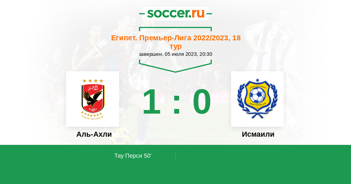 50' (1:0) Тау Перси (23) (Абдель Фаттах Халед (2))