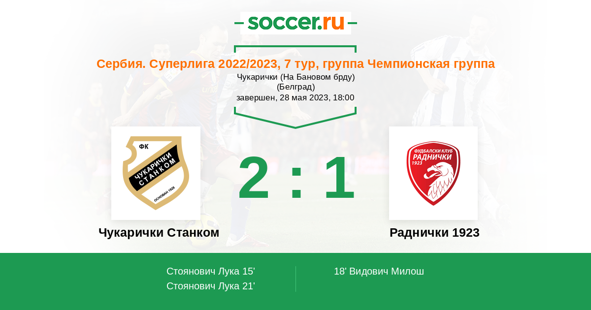 21' (2:1) Стоянович Лука (8)