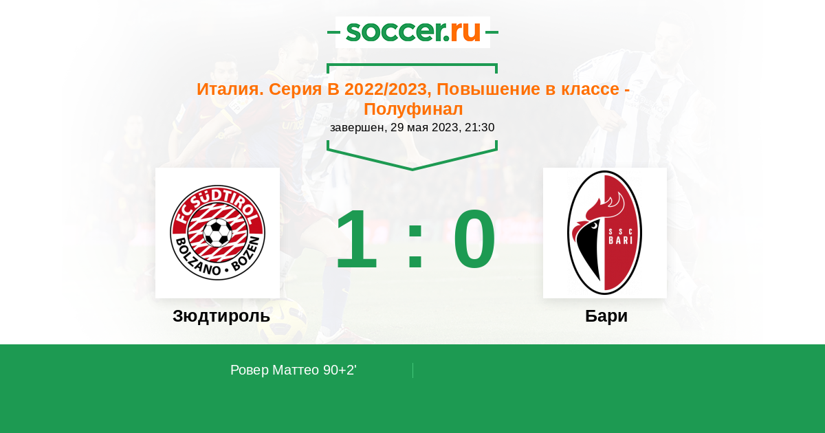 90+2' (1:0) Ровер Маттео (18) (Казираги Даниэле (17))