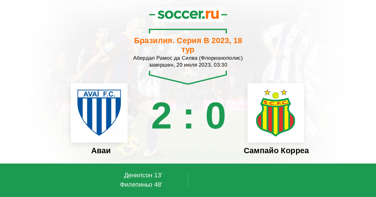 13' (1:0) Денилсон (9) (Гава Рафаэл (23))