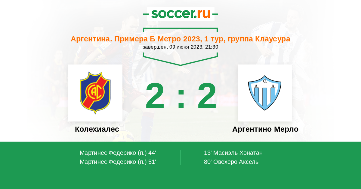 44' (1:1) Мартинес Федерико