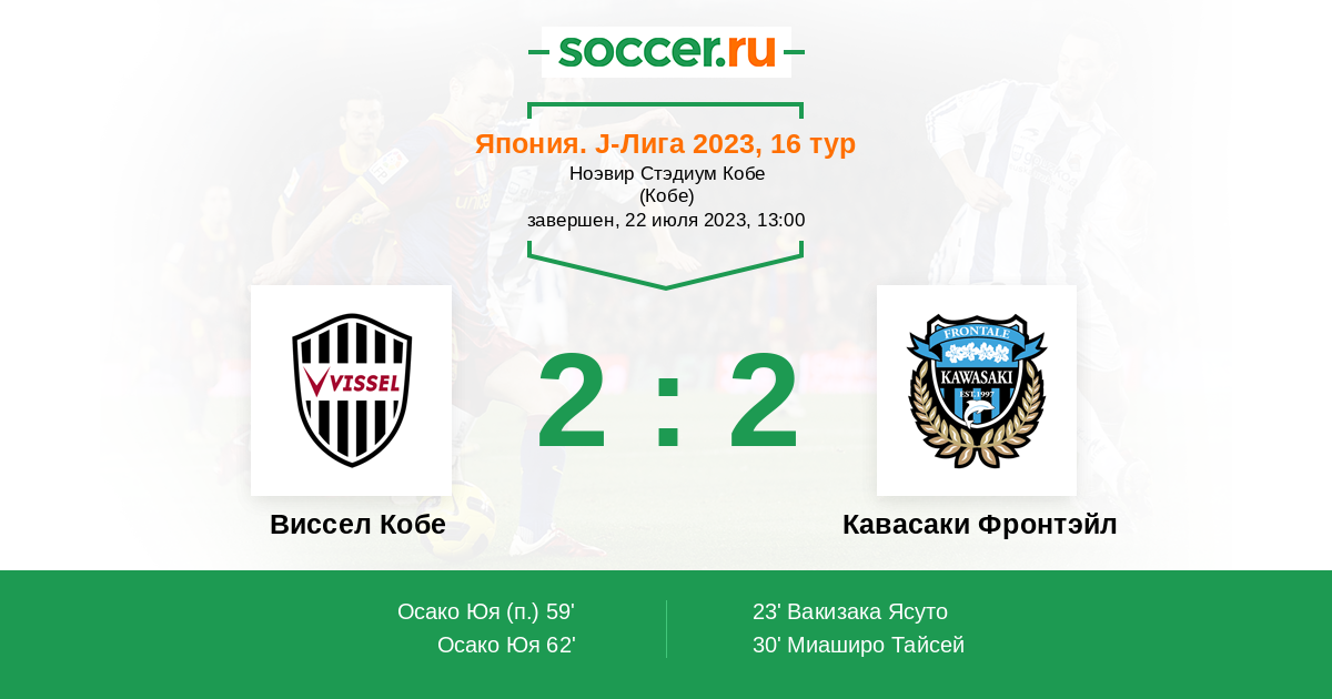 62' (2:2) Осако Юя (10) (Юруки Койя (14))