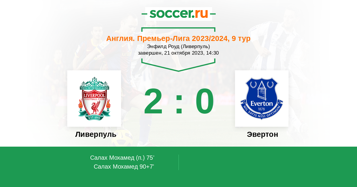 90+7' (2:0) Салах Мохамед (11) (Нуньес Дарвин (9))