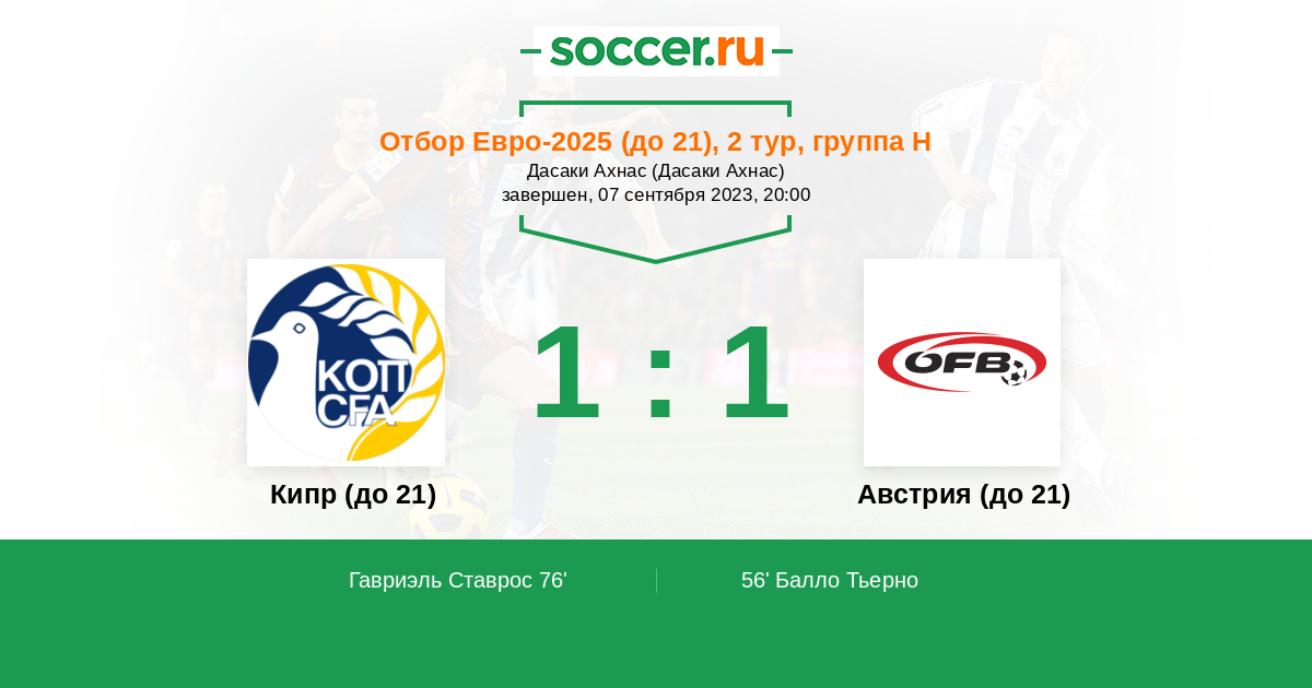 76' (1:1) Гавриэль Ставрос (11) (Сатсиас Гианнис (7))