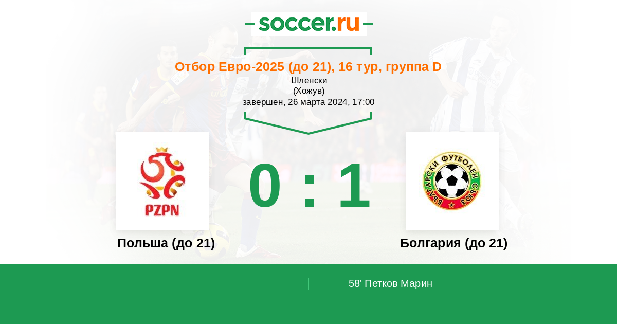 58' (0:1) Петков Марин (11) (Шопов Станислав (8))