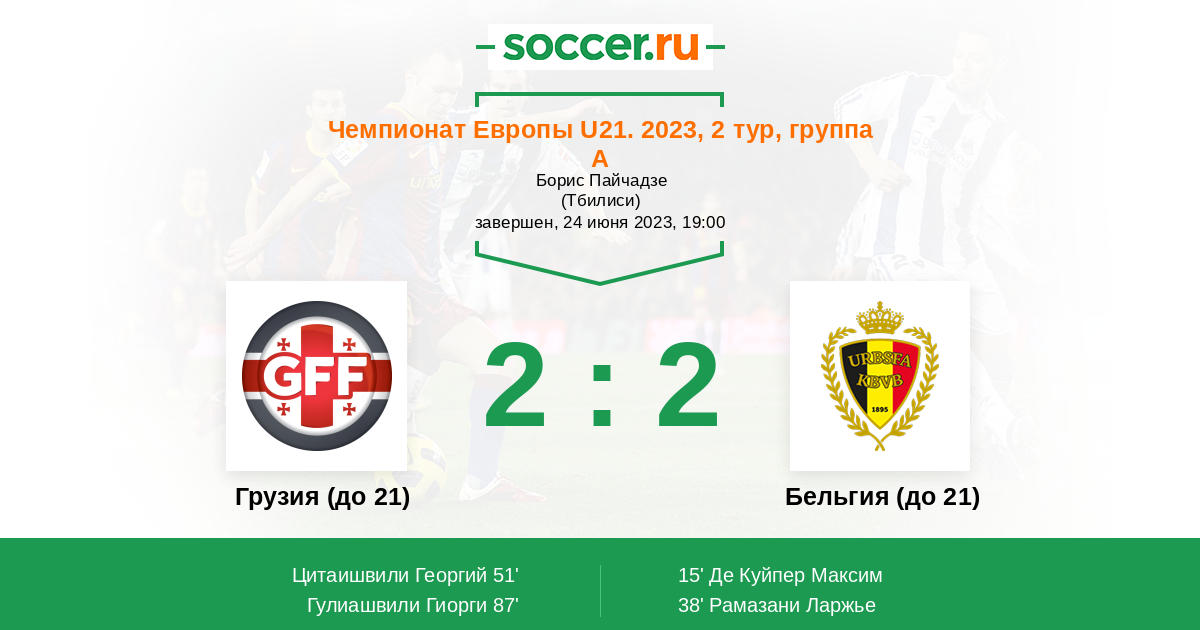 Запасные: 13 Гочолешвили Гиорги (с 46'), 20 Гагнидзе Ника (с 46'), 19 Цитаишвили Георгий (с 46'), 9 Гулиашвили Гиорги (с 71'), 21 Ломинадзе Нодар (с 81'), 23 Куталадзе Лука, 2 Капанадзе Цотне, 12 Каличава Нодари, 18 Мамагейшвили Отар, 14 Сигуа Габриэль, 22 Джинджолава Джемали-Георгий, 17 Хорхели Ника