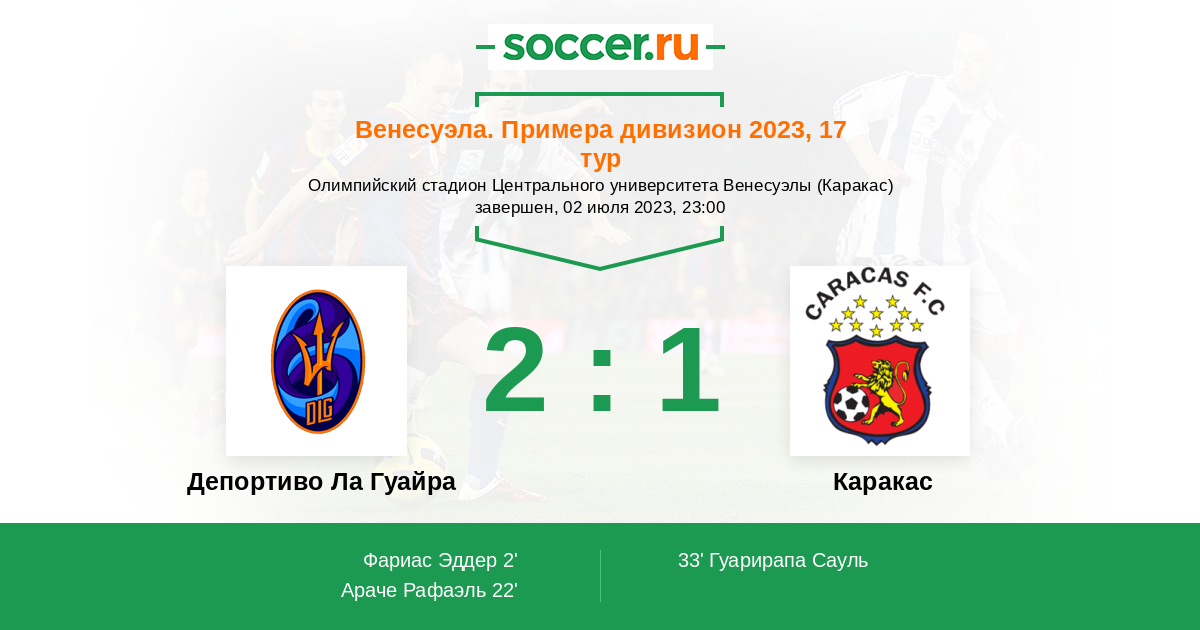 22' (2:0) Араче Рафаэль (10) (Флорес Арлес (8))