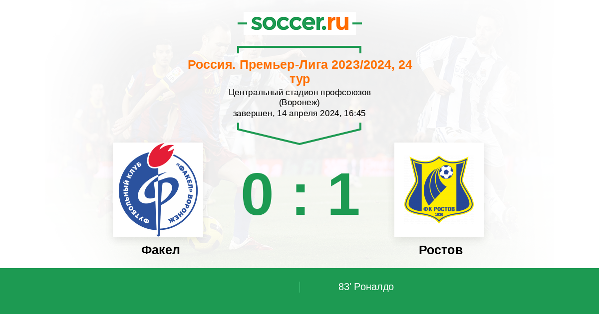 83' (0:1) Роналдо (7) (Голенков Егор (69))