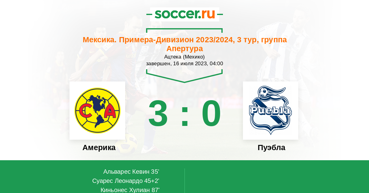 35' (1:0) Альварес Кевин (5) (Киньонес Хулиан (33))