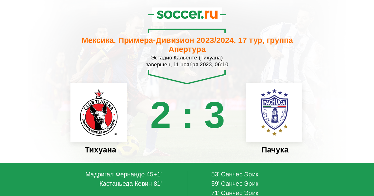 59' (1:2) Санчес Эрик (10) (Кастильо Хосе (14))