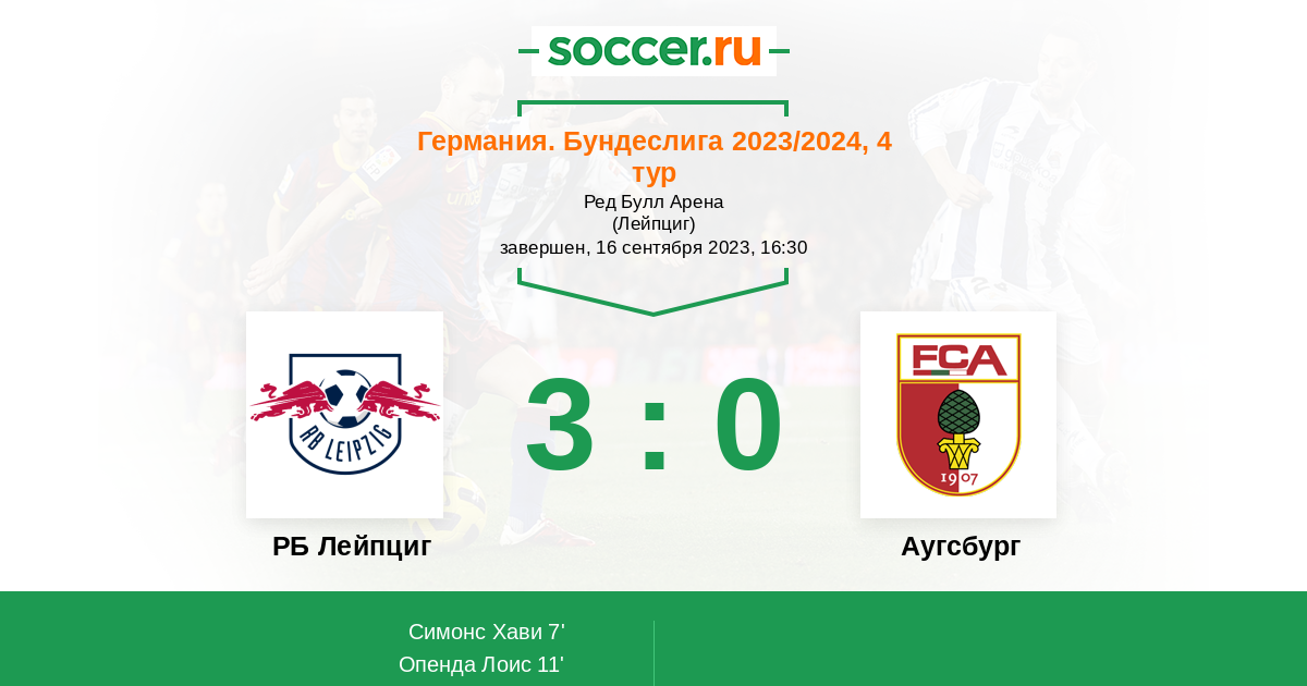 7' (1:0) Симонс Хави (20) (Опенда Лоис (17))
