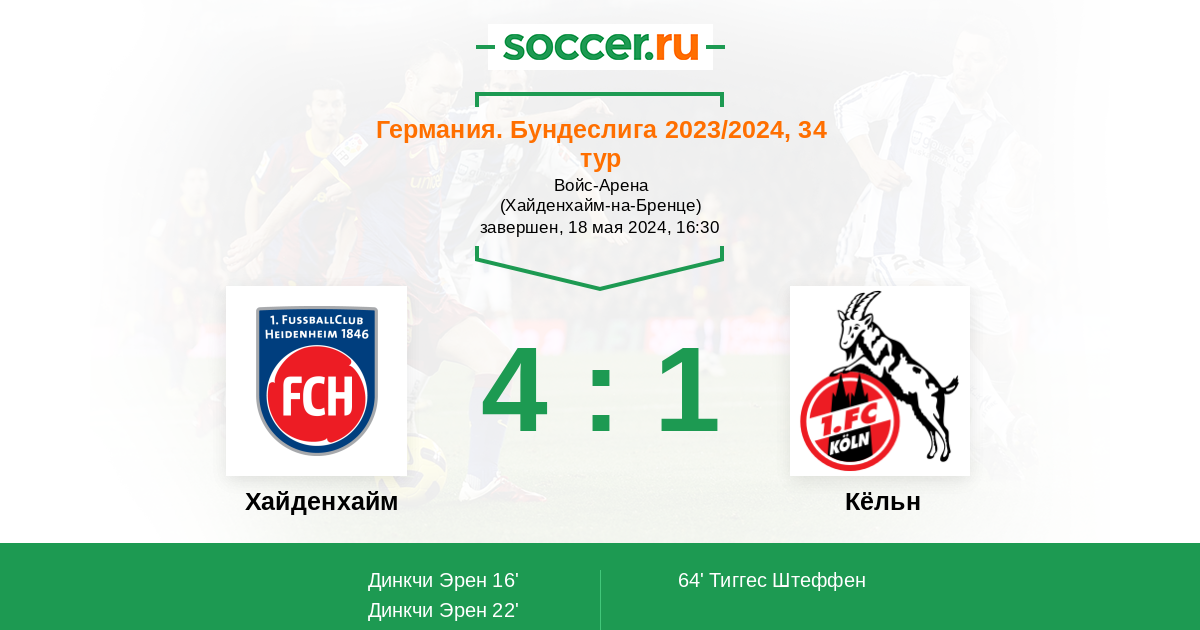 64' (3:1) Тиггес Штеффен (21)