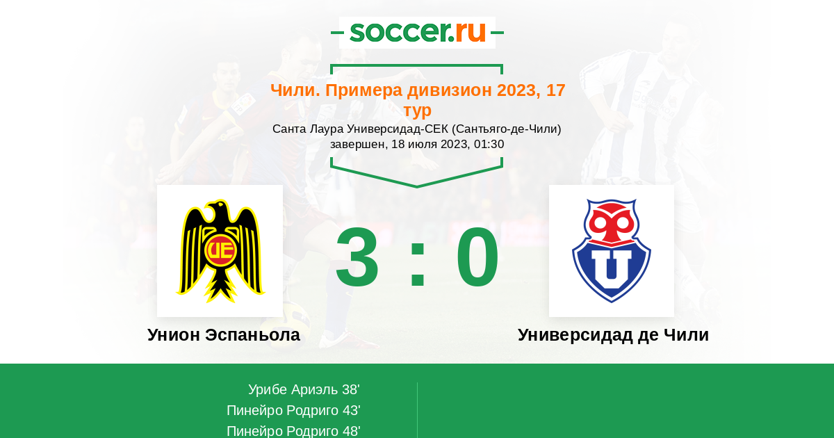 38' (1:0) Урибе Ариэль (11) (Пинейро Родриго (10))