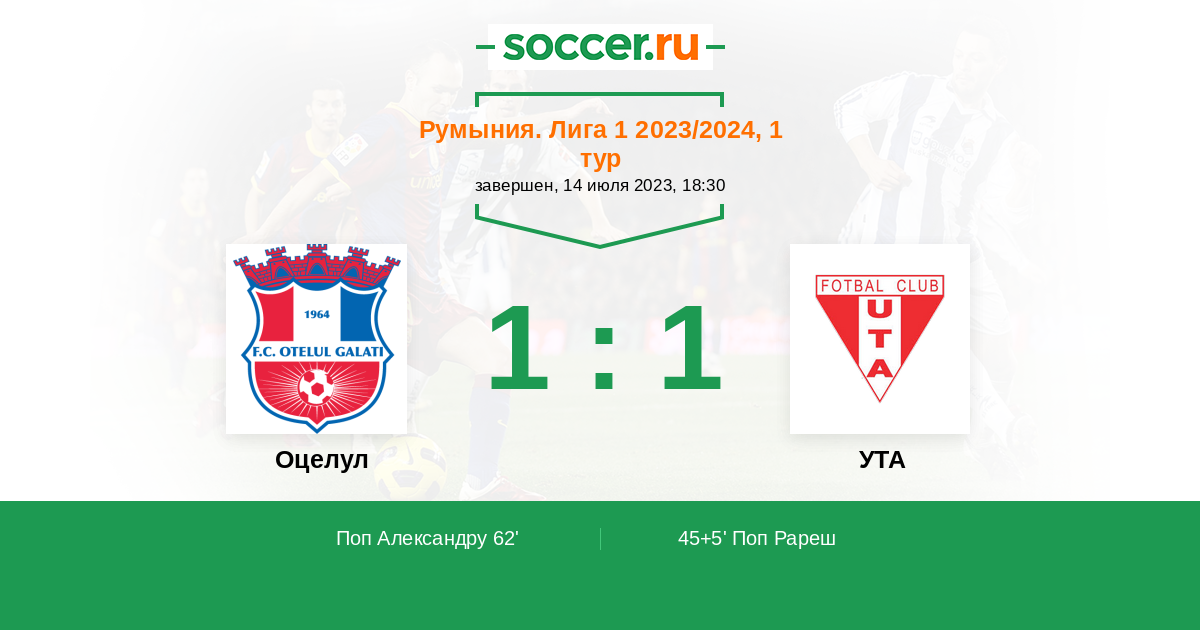 45+5' (0:1) Поп Рареш (55)