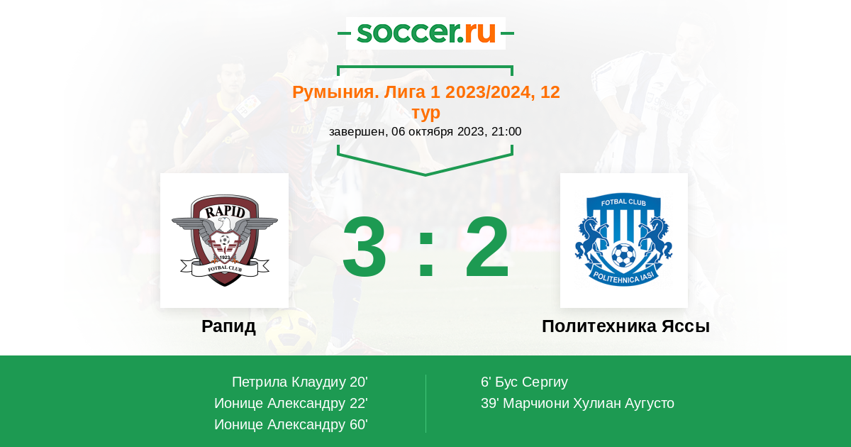 6' (0:1) Бус Сергиу (9) (Карлос (95))