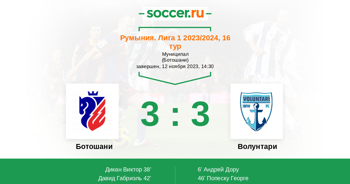38' (1:1) Дикан Виктор (6) (Флореску Эдуард (8))