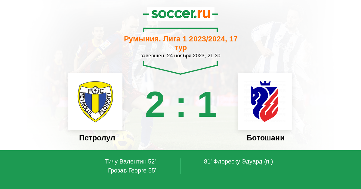 55' (2:0) Грозав Георге (7)