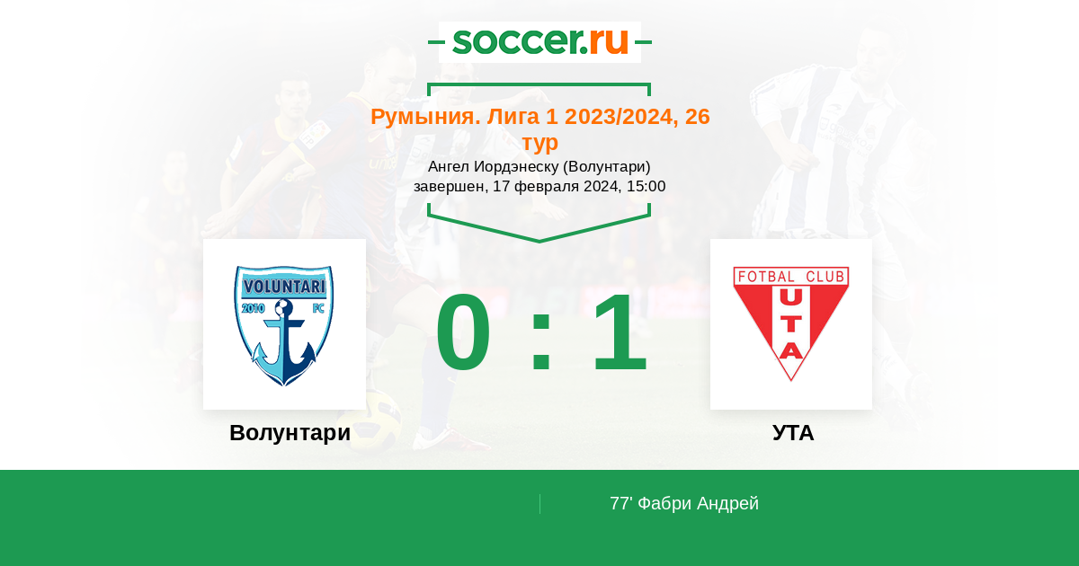 77' (0:1) Фабри Андрей (10) (Кэпушэ Тибериу (98))