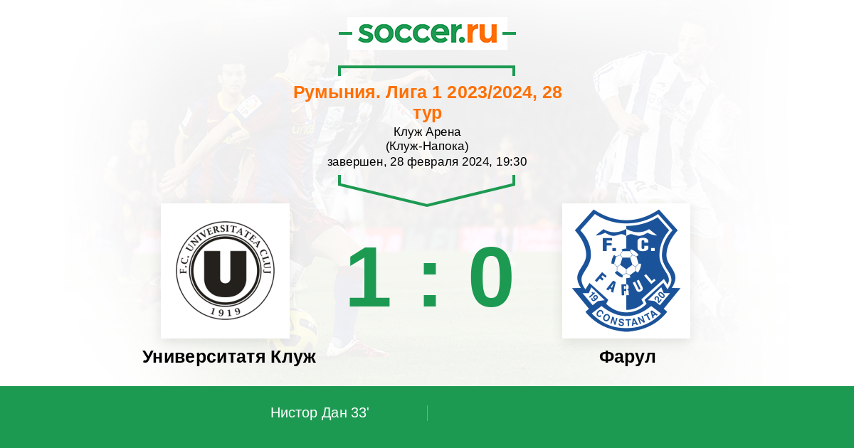 33' (1:0) Нистор Дан (10) (Попа Даниэль (19))