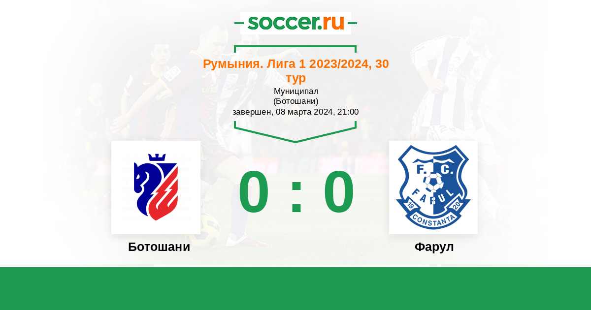 Запасные: 45 Маринс Густаво (с 40'), 5 Кейрош Диого (с 60'), 11 Ганя Кристиан Георге (с 61'), 15 Данулеша Габриэль (с 74'), 24 Грамени Константин (с 74'), 27 Кожокару Ионуц, 34 Мусат Стефан, 23 Касап Карлос, 10 Будеску Константин, 19 Андроначе Лука, 12 Рэфаилэ Влад-Андрей, 66 Гросу Дариус