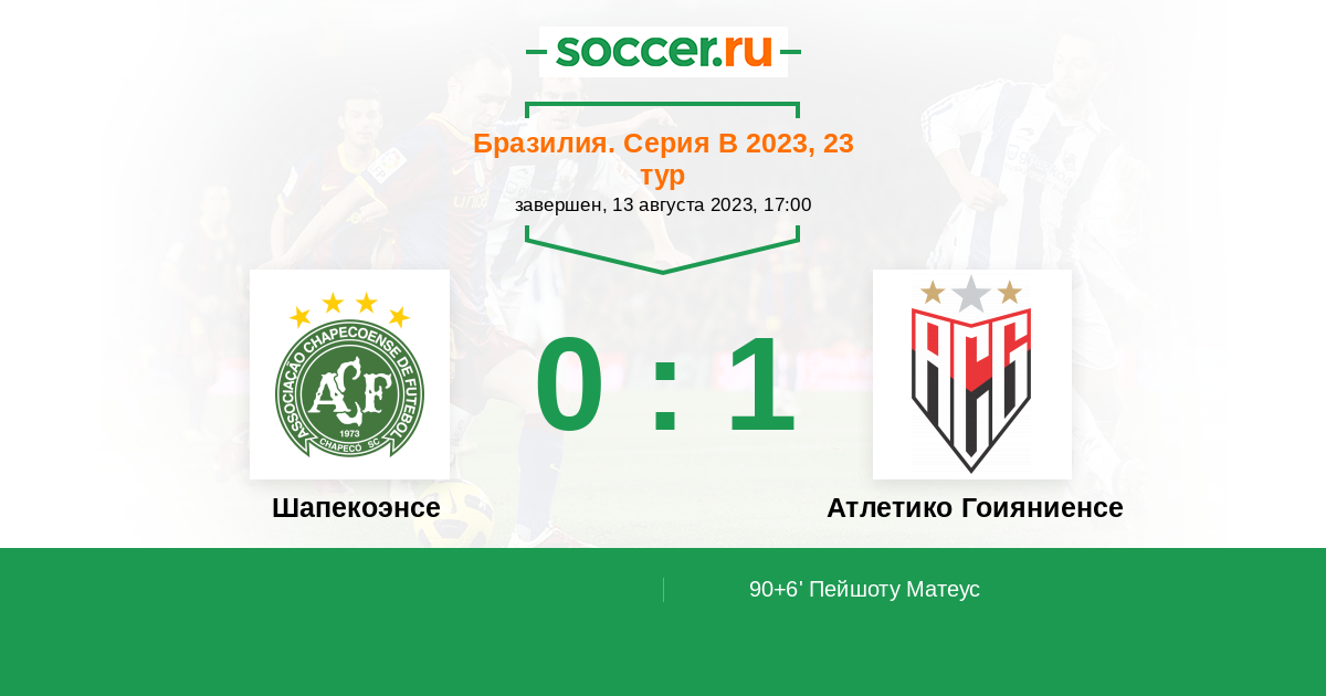90+6' (0:1) Пейшоту Матеус (18) (Лукас Эстевеш (6))