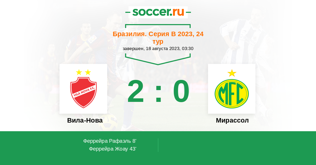 43' (2:0) Феррейра Жоау (10) (Парагуайо (77))