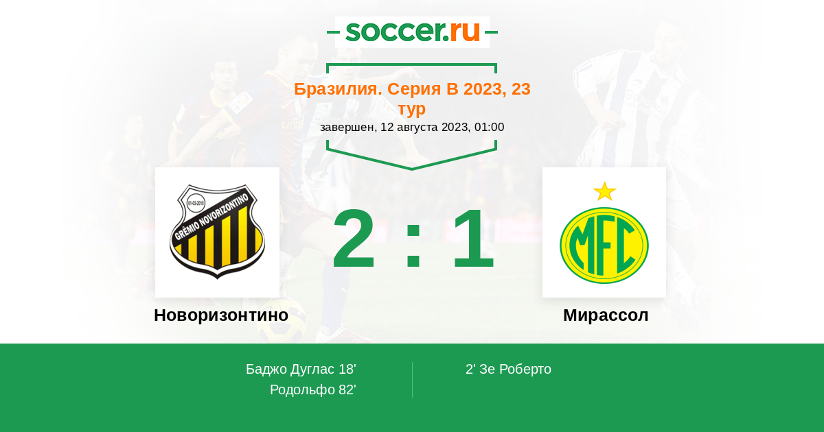 82' (2:1) Родольфо (77) (Жеован (5))