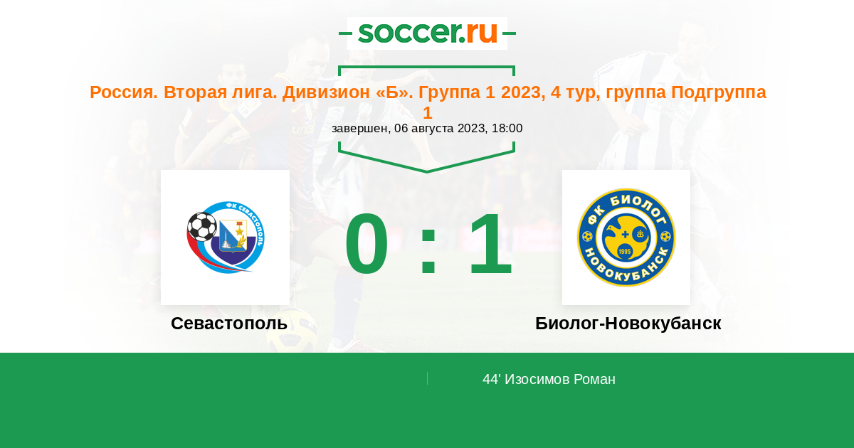 44' (0:1) Изосимов Роман