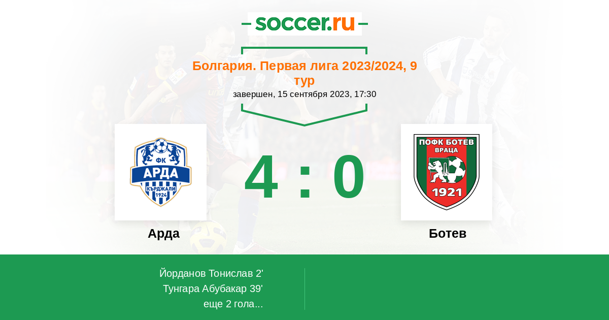39' (2:0) Тунгара Абубакар (7) (Йорданов Тонислав (97))