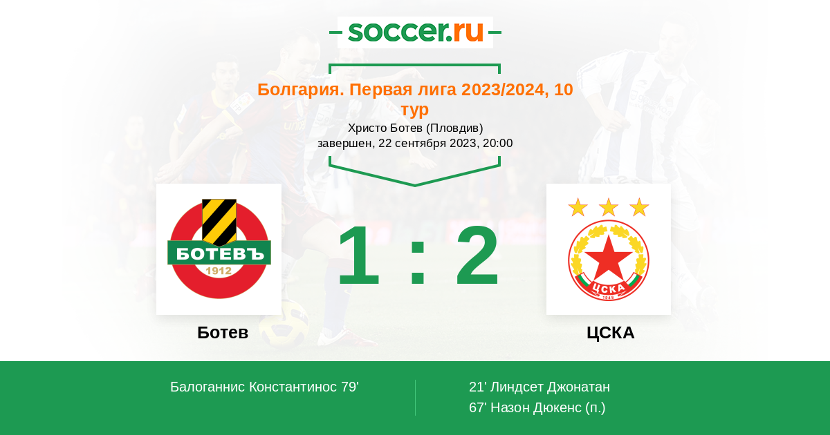 79' (1:2) Балоганнис Константинос (38) (Попов Ивелин (10))