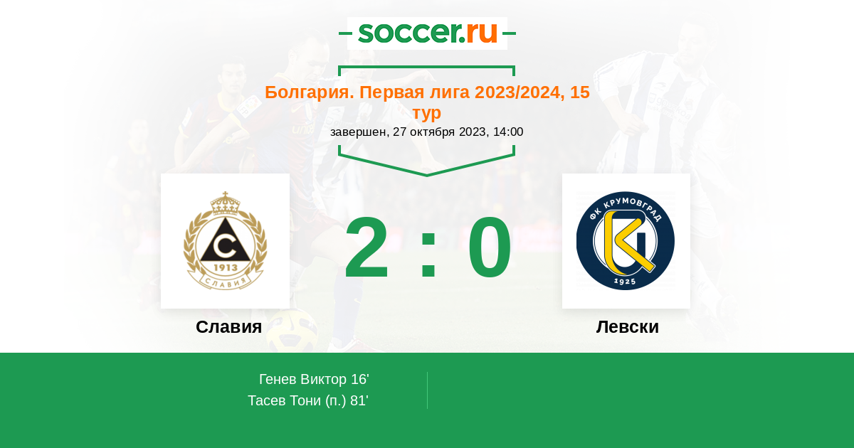 16' (1:0) Генев Виктор (4) (Тасев Тони (88))