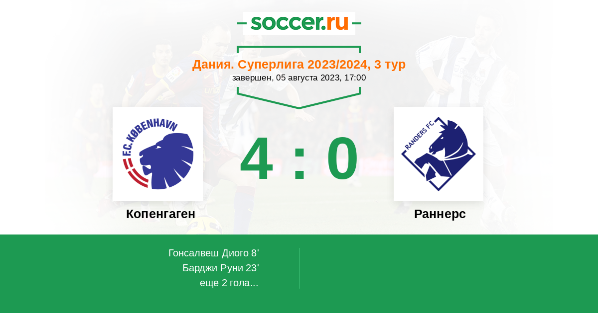 23' (2:0) Барджи Руни (40) (Фальк Расмус (33))